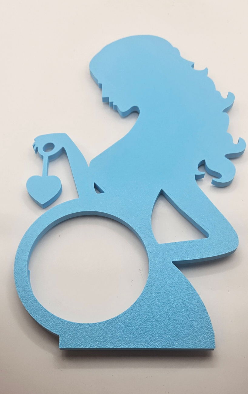 Gi ultralydbildet ditt en helt spesiell plass med vår dekorative og stilrene 3D-printede holder. Silhuett-designet fremhever det vakre ved graviditeten og gir en emosjonell touch til hjemmet. Perfekt gave til gravide, babyshowers eller som et varig minne til deg selv.