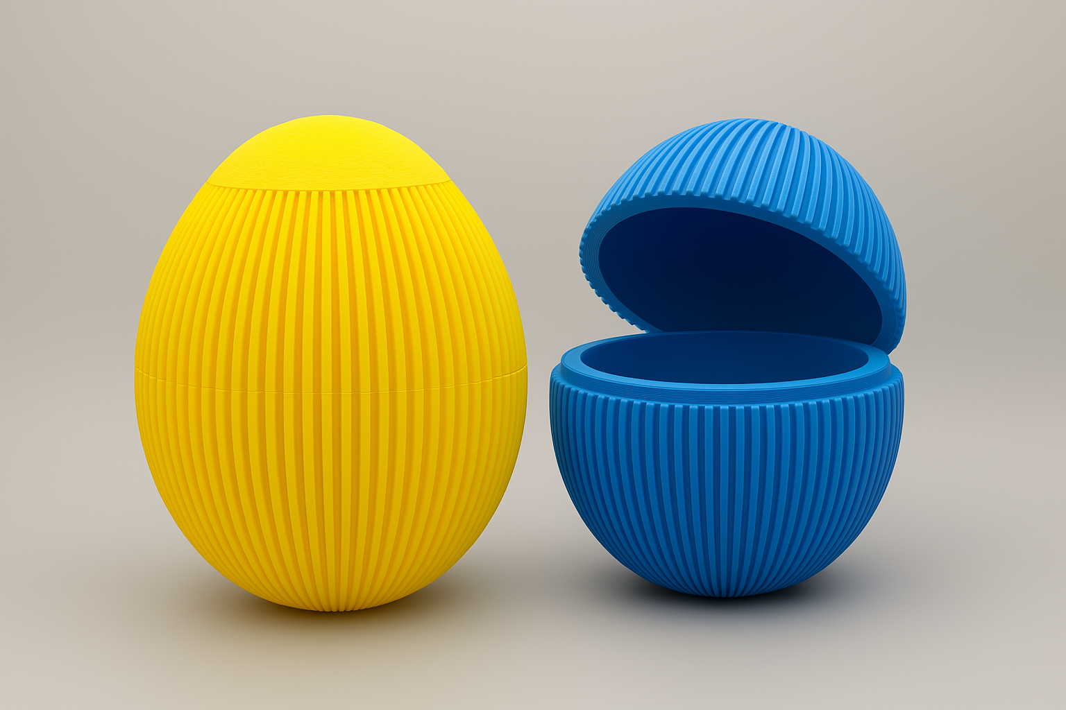 Gi påsken et moderne og miljøvennlig preg med vårt Påskeegg! Dette påskeegget er ikke som alle andre – det er nøye 3D-printet i bærekraftig PLA-plast med en lekker ribbet overflate som gir en eksklusiv og taktil følelse. Egget åpnes enkelt i to deler og kan fylles med godteri, små gaver eller overraskelser.