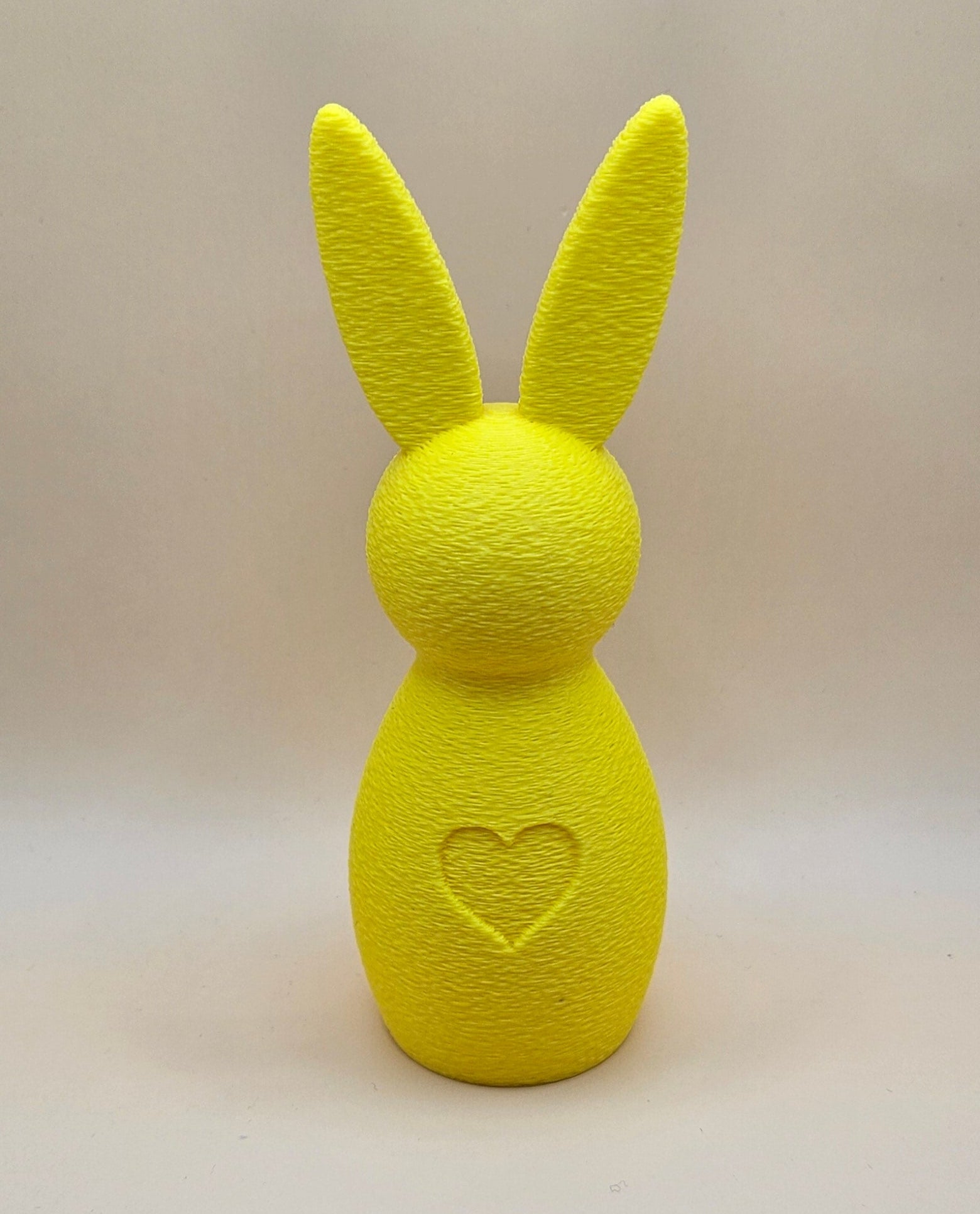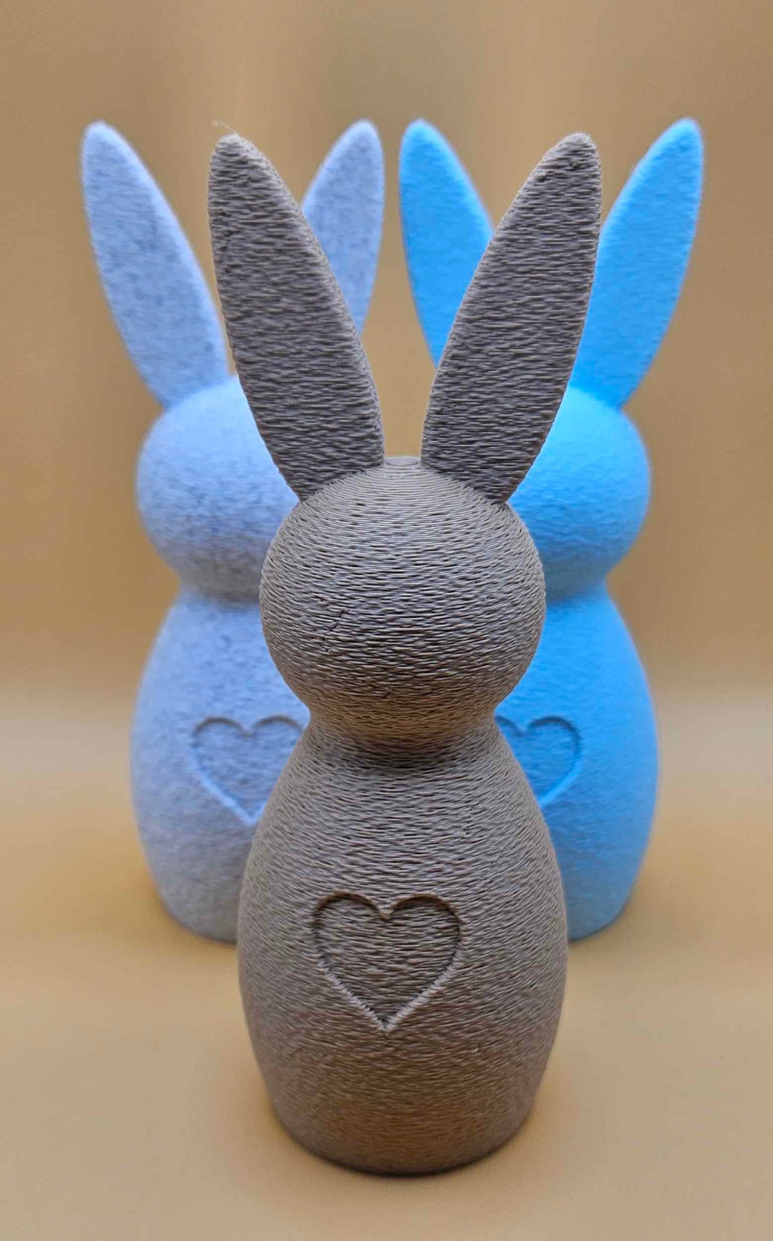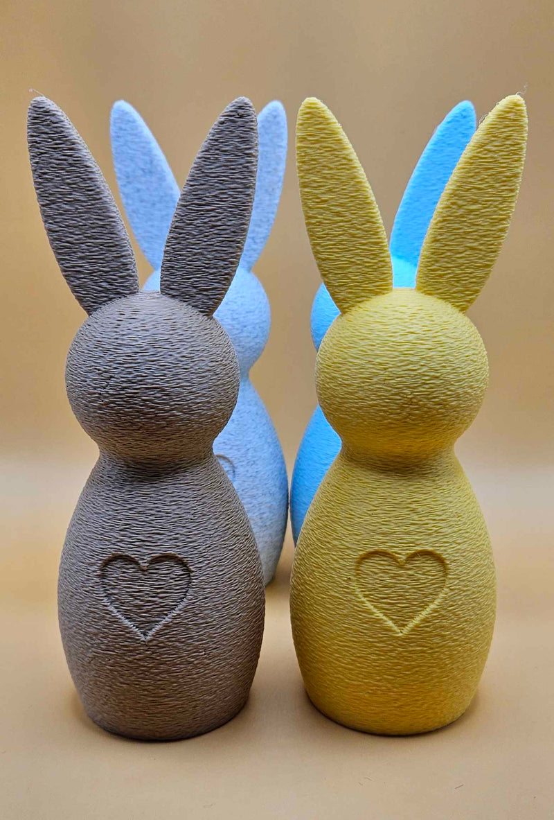 Gi hjemmet ditt et sjarmerende preg denne påsken med våre nydelige rustikke påskeharer! Disse dekorative figurene er 3D-printet med en unik strukturert overflate som gir et håndlaget og varmt uttrykk. Hver hare har et søtt inngravert hjerte i magen som symboliserer kjærlighet og glede.