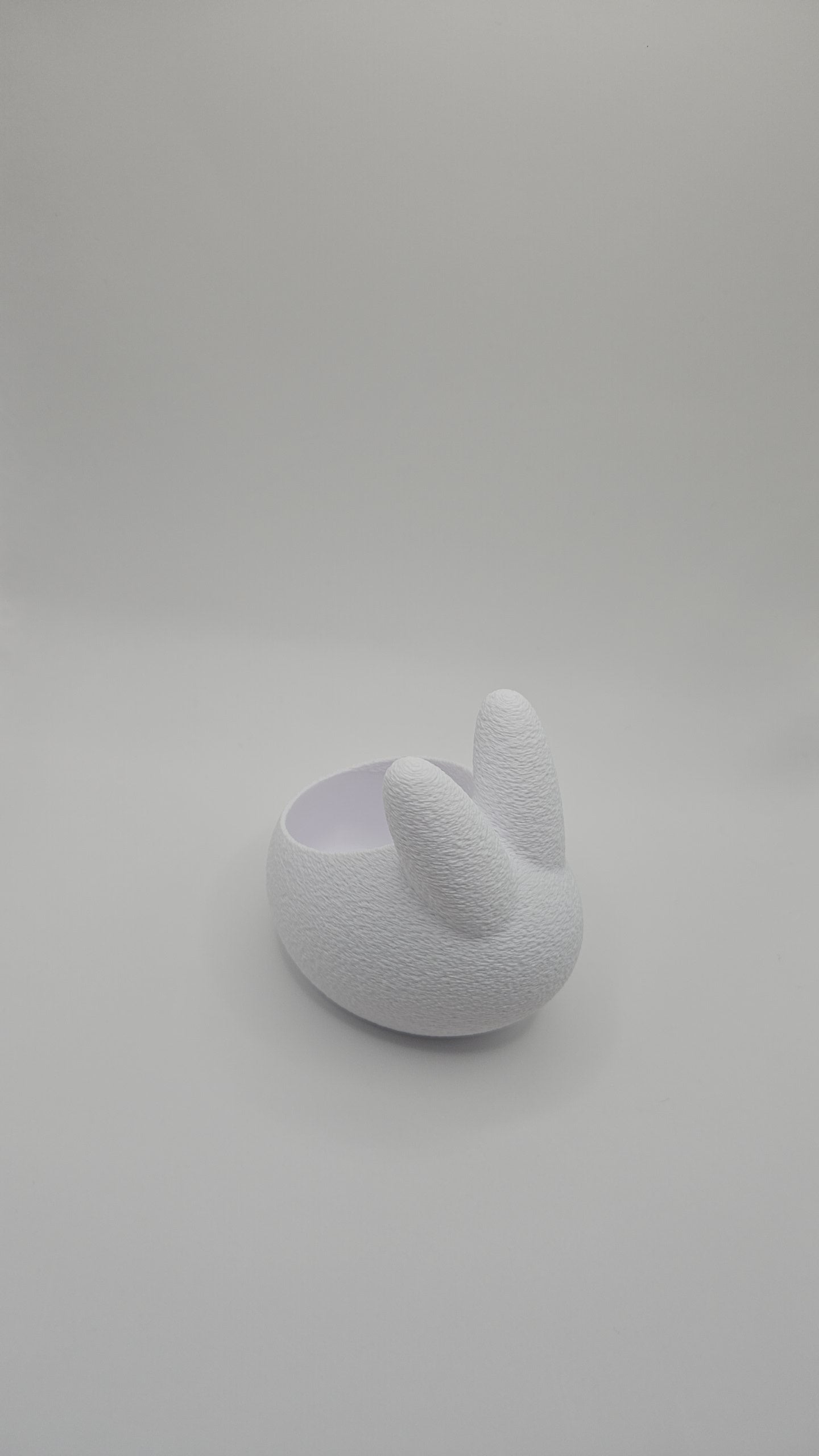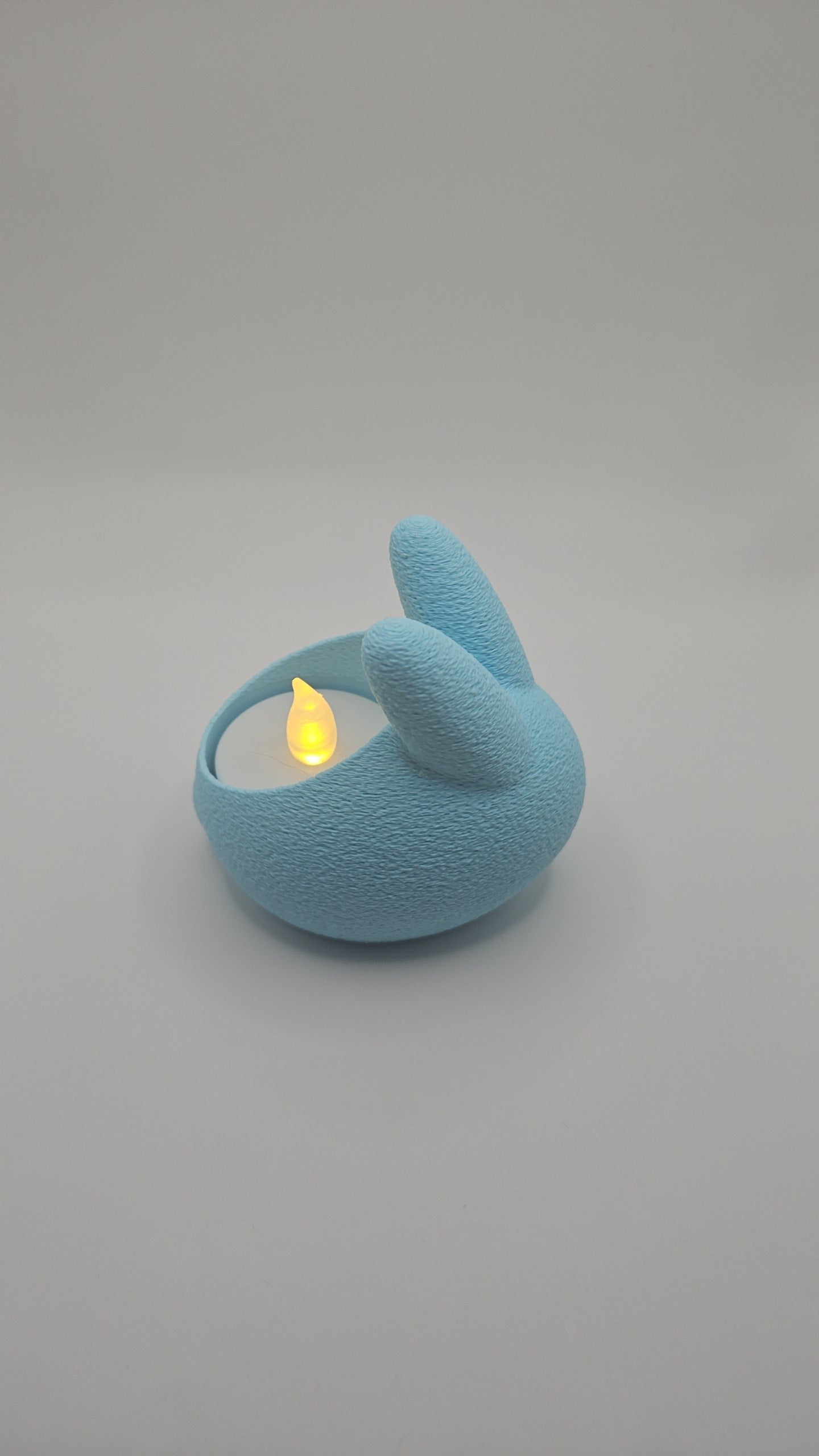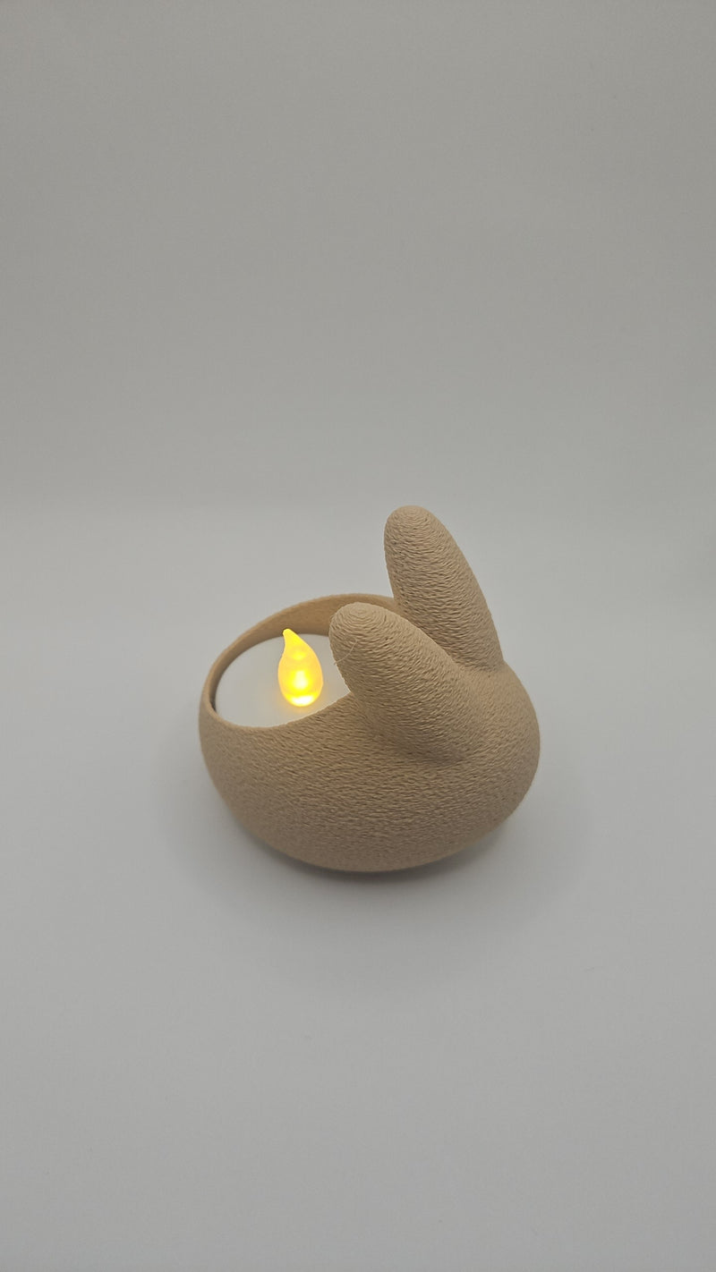 Denne unike telysholderen er 3D-printet med en nydelig, lett ru tekstur som minner om pelsen til en liten hare. Med sine ikoniske kaninører og myke former, er den en sjarmerende detalj i ethvert rom. Den passer perfekt til LED-telys, og gir et varmt og koselig uttrykk – både til påske og som en fast del av interiøret.