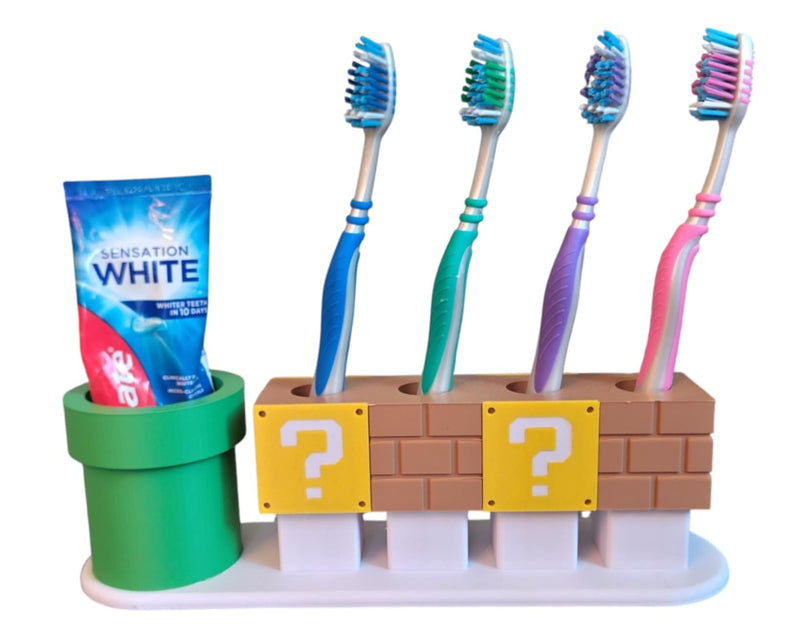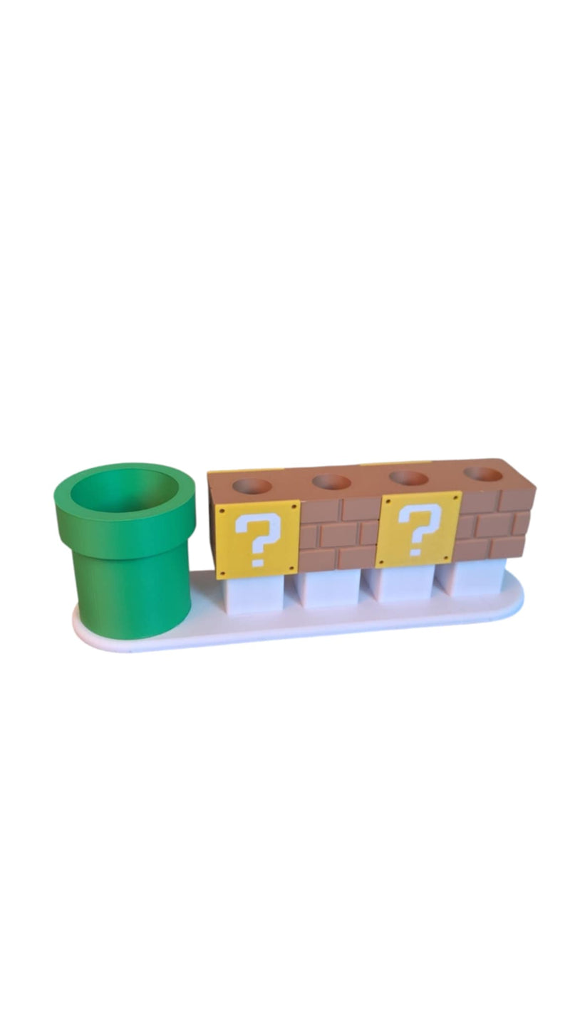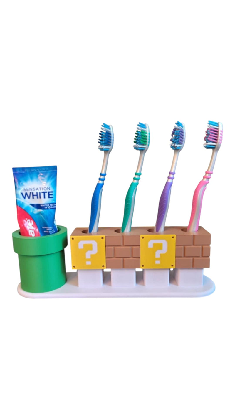 Dette unike stativet er 3D-printet med høy kvalitet og designet for å ligne de ikoniske klossene og rørene fra Mario-universet. Perfekt for både barn og voksne, og rommer opptil 4 tannbørster samt én tannkremtube.