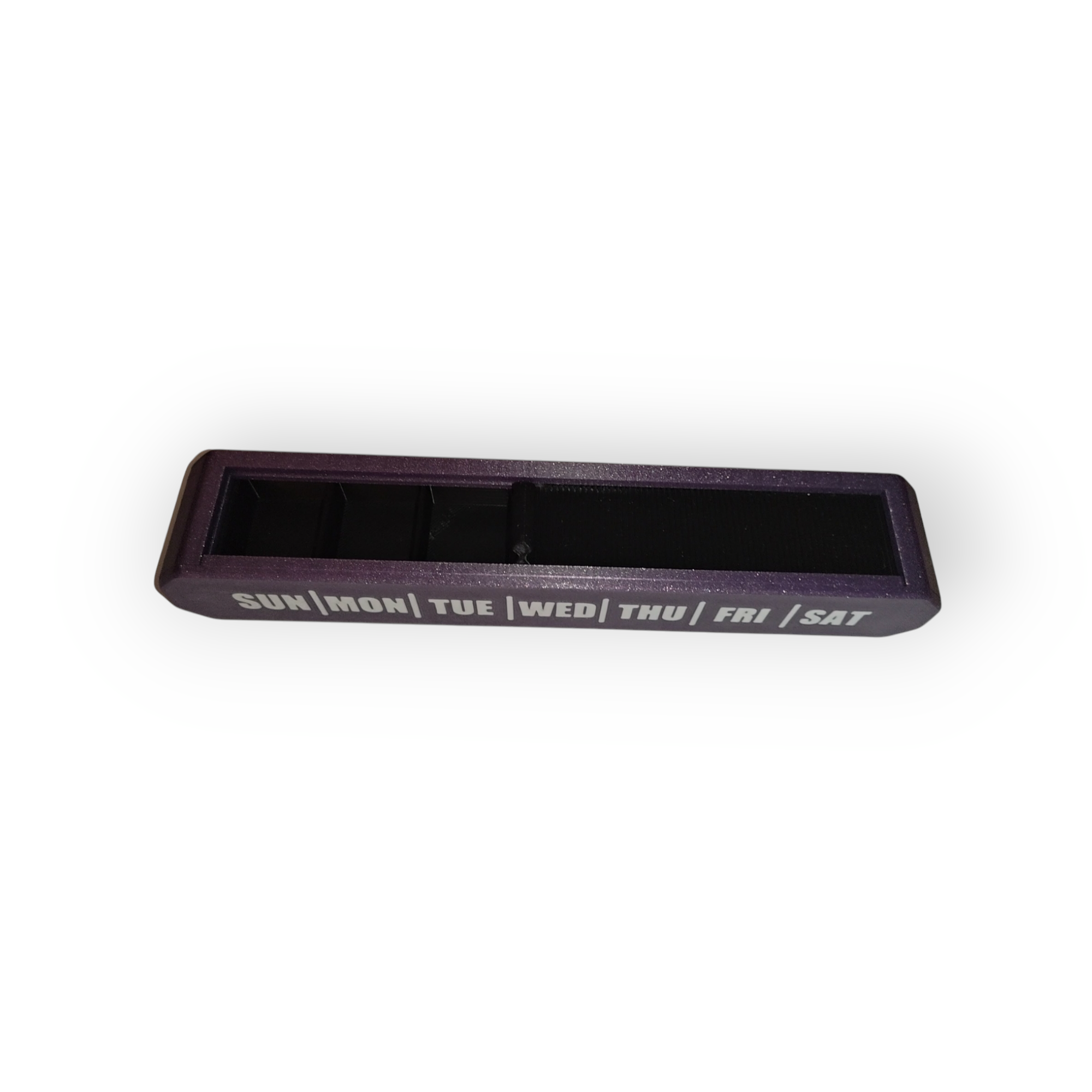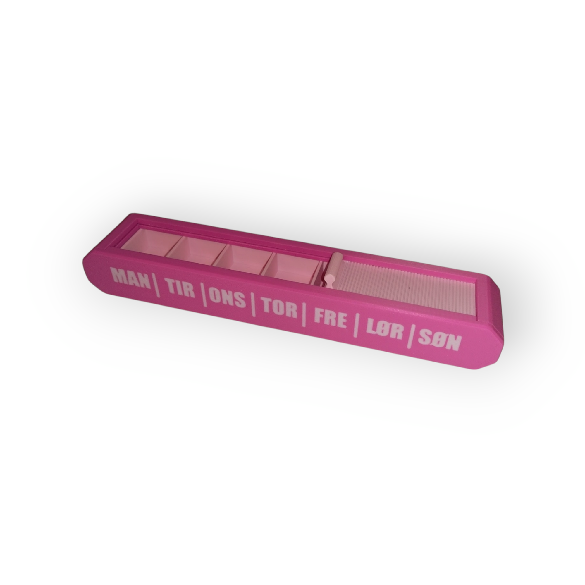 Hold styr på dine daglige medisiner med vår smarte doseringsboks, designet for enkel bruk og stor kapasitet. Med et praktisk skyvelokk, kan du enkelt åpne og lukke boksen uten søl eller rot. Perfekt for deg som ønsker en ryddig og oversiktlig løsning for å administrere medisiner eller kosttilskudd gjennom hele uken.