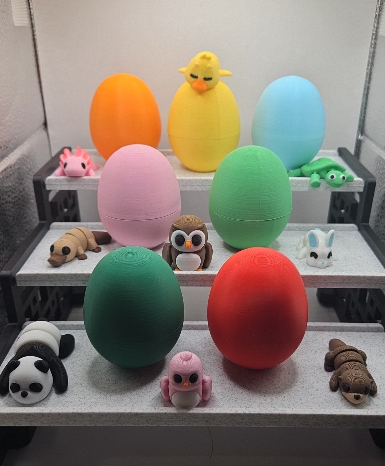 Hver bestilling er et lite eventyr! JigglePetz Surprise Egg inneholder én tilfeldig, sjarmerende figur – laget med miljøvennlig PLA og 3D-printet med kjærlighet her i Norge. Du vet aldri hvem som skjuler seg inne i egget før du åpner det – og det er akkurat dét som gjør det så magisk!